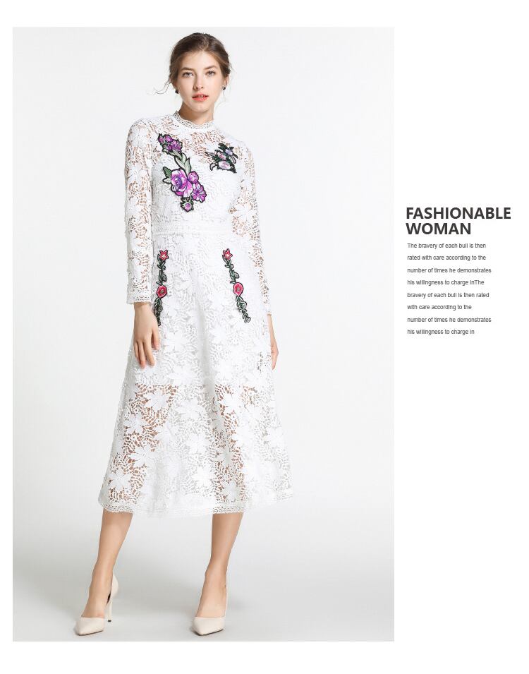 【新作】【送料無料】 SMTHMA2020春の女性のドレスラウンドカラーヴィンテージレース刺繡フラワードレスホワイトロングドレス 刺繍 スプリング 春物 フラワーデザイン ビンテージ AL Feminine227238164637 | Feminine