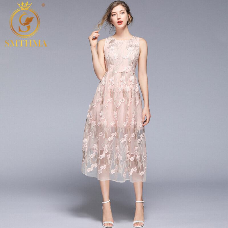 【新作】【送料無料】 SMTHMAランウェイレディースノースリーブサマードレスフローラルメッシュ刺繡ふくらはぎ丈パーティードレスvestidos 刺繍 夏物 花柄 AL Feminine217385116355 | Feminine