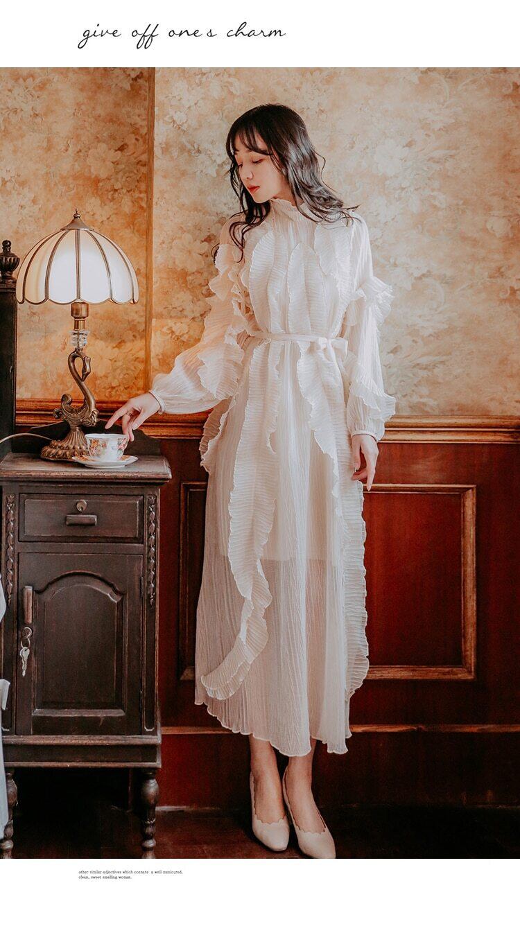 【新作】【送料無料】 SMTHMA-エンドランウェイドレス2020レディース春/秋フルスリーブホワイトプリーツフリルマキシロングベスティドス スプリング 春物 AL Feminine225077476483 | Feminine