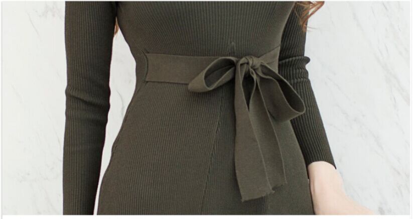 【新作】【送料無料】 2020ニットドレス女性スリム秋冬長袖ウエストグリーン/ブラックセータードレスVestidos ロング オータム 秋物 ウィンター 冬物 AL Feminine284131365497 | Feminine