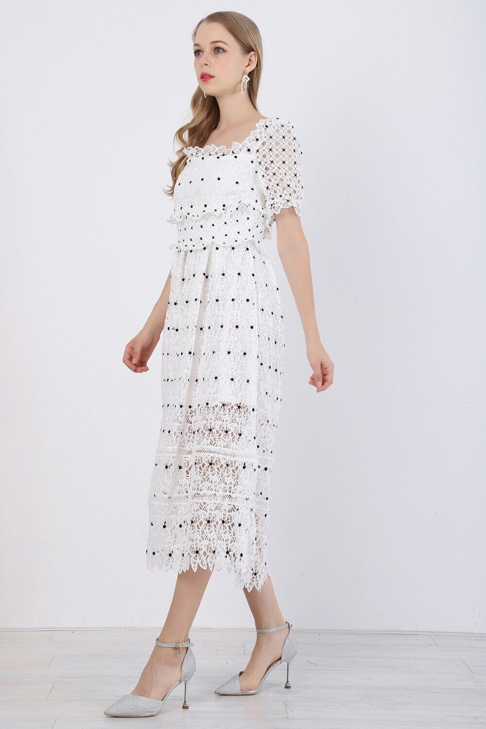 【新作】【送料無料】 SMTHMAサマーランウェイセルフポートレートドレスレディースホワイト刺繡レースロングパーティードレスフリルドレス ラッフル 刺繍 夏物 AL Feminine215553881706 | Feminine