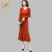 【新作】【送料無料】 秋冬のニット女性セータードレス暖かい長袖セクシーなスリムプルオーバーVネックマキシドレス ロング オータム 秋物 ウィンター 冬物 AL Feminine235382354805