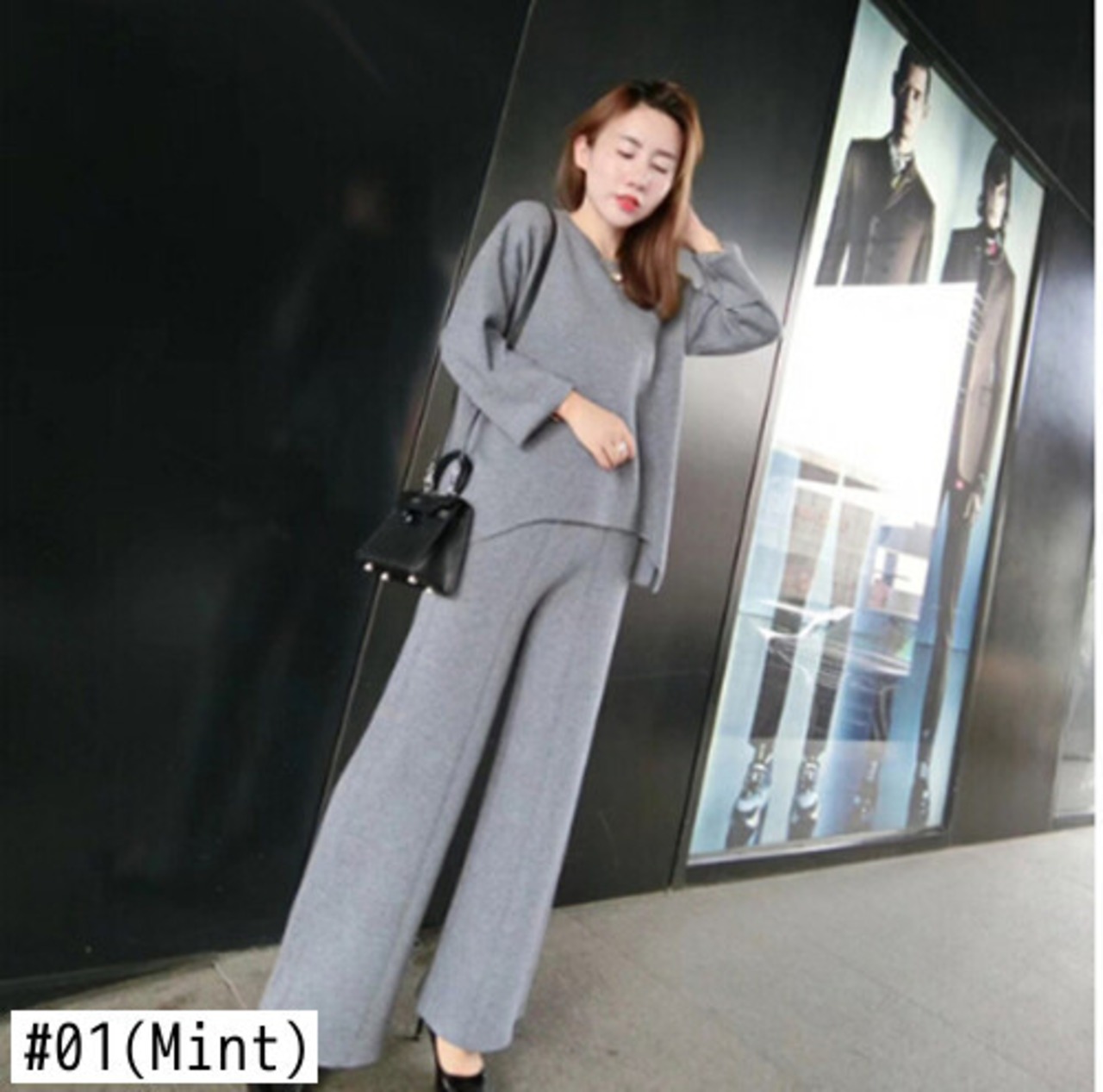 【新作】【送料無料】 冬の厚みのあるニット女性2ピースパンツセットファッションカジュアル無地ウォームプルオーバーセーターとワイドレッグパットセット ウィンター 冬物 ワイドパンツ ソリッドカラー AL Feminine217649257630 | Feminine