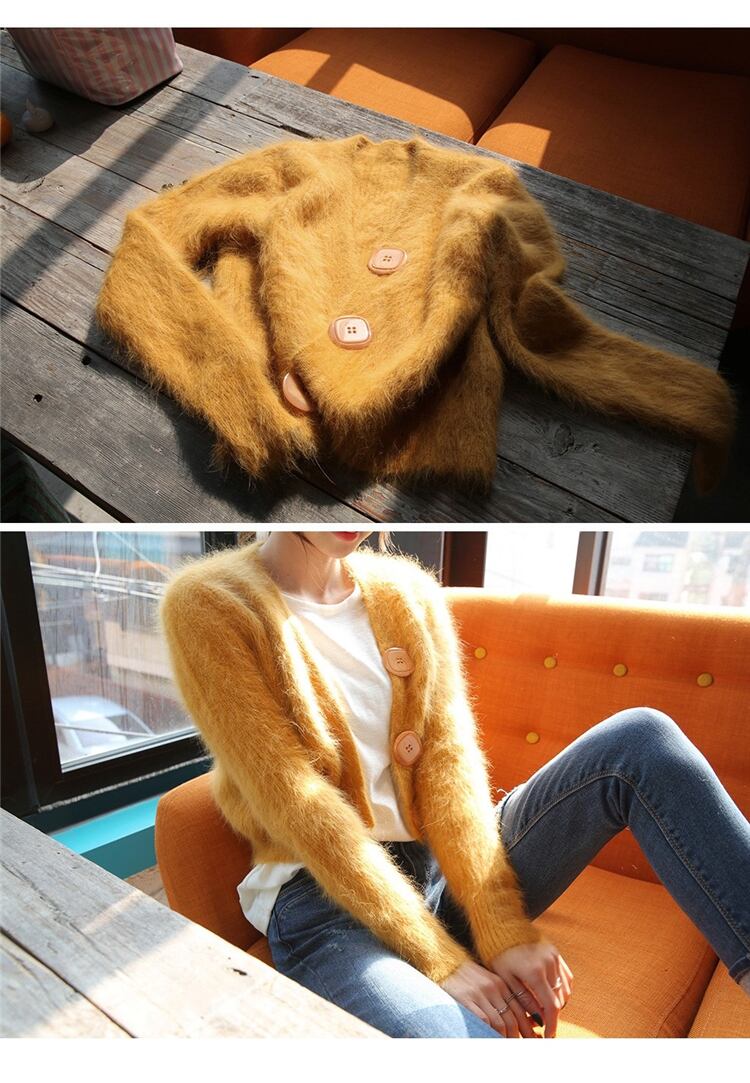 【新作】【送料無料】 冬服女性モヘアカーディガン長袖無地スリムシンプルシングルブレストセーターカーディガン ロング ウィンター 冬物 ソリッドカラー AL Feminine29105705424