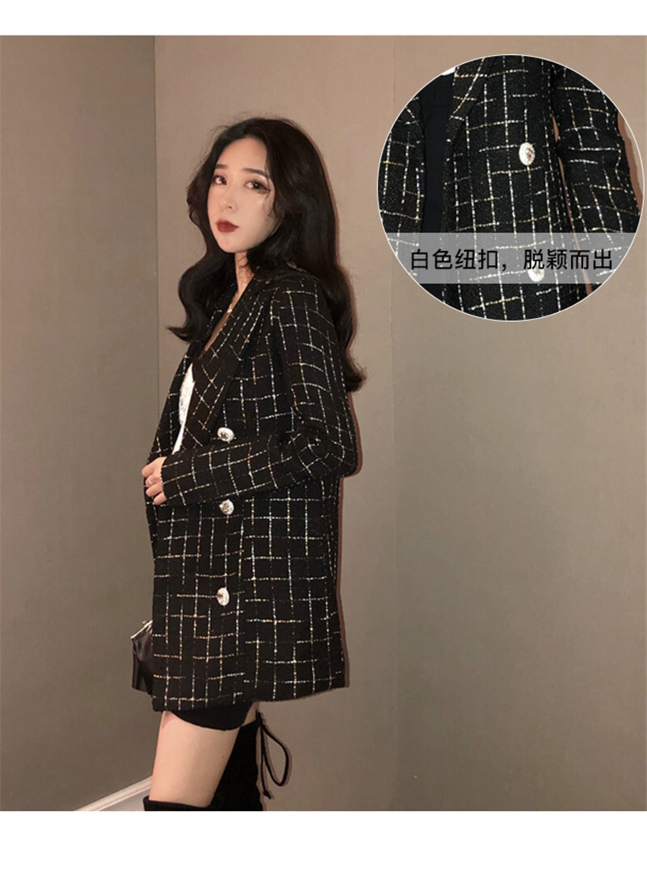 【新作】【送料無料】 ブラック/ホワイトチェック柄ツイードジャケットダブルローダイヤモンドボタンロングコート2020秋冬コートスパークルスパンコールレディジャケット ウィンター 冬物 AL Feminine218459311727 | Feminine