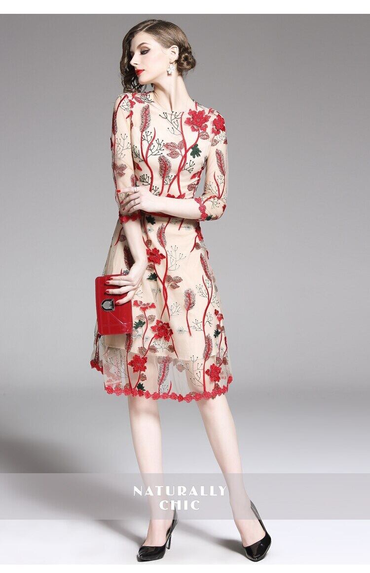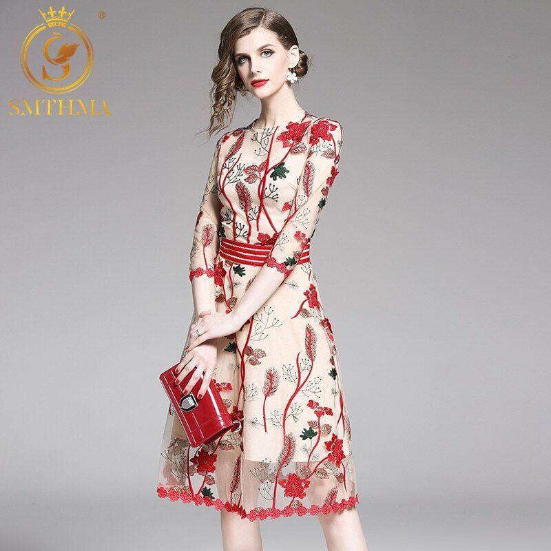 【新作】【送料無料】 SMTHMA2020滑走路ドレス女性三次元フラワーメッシュ刺繡サマードレスヴィンテージパーティードレスVestidos 刺繍 夏物 フラワーデザイン ビンテージ AL Feminine274917670550 | Feminine