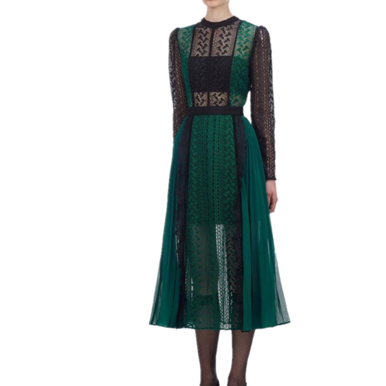 【新作】【送料無料】 SMTHMAラグジュアリーランウェイドレスオータムアライブグリーンカラープリーツレースミディドレスvestidos 秋物 AL Feminine248135544988 | Feminine