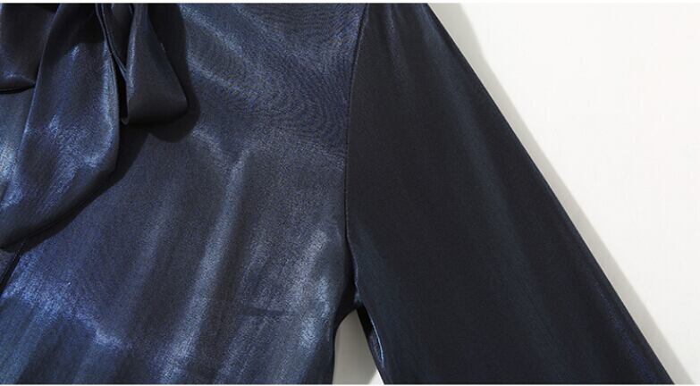 【新作】【送料無料】 SMTHMA 20202ピースセットレトロルーズボウシャツ+ブルーイエローパッチワークシャイニープリーツスカートレディースプリントスカートスーツ リボン AL Feminine22157987326