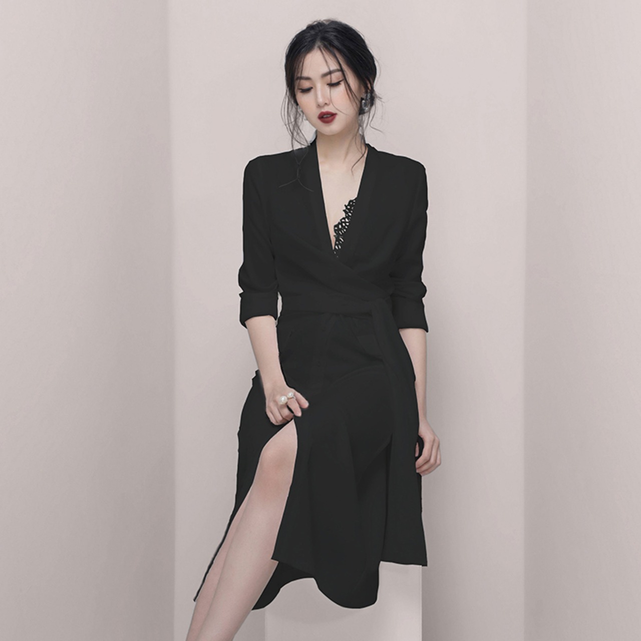 【新作】【送料無料】 SMTHMA2020ランウェイドレスレディースパーティーオフィスレディストリートウェアVネックシングルブレストドレス 会社 学校 通勤や通学にも AL Feminine217822466509 | Feminine