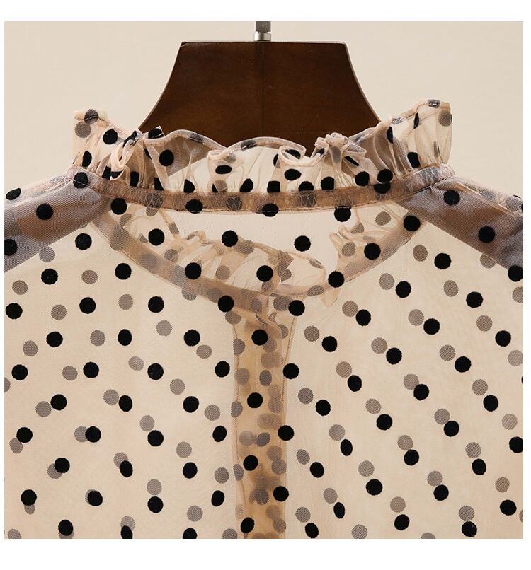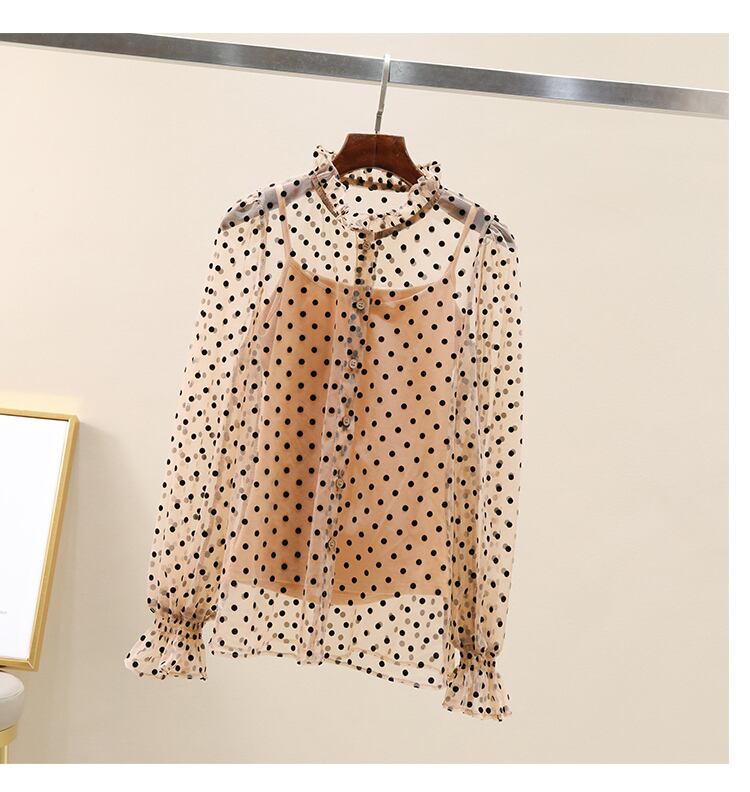 【新作】【送料無料】 SMTHMA2020春の女性長袖スウィートドットブラウスメッシュ中空パースペクティブセクシーシャツ+ベスト ロング 大人ガーリー キュート カジュアル スプリング 春物 AL Feminine253785862049
