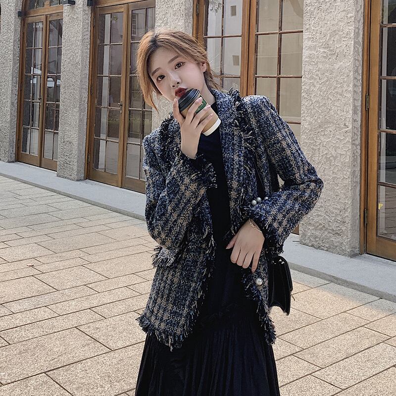 【新作】【送料無料】 2020年秋冬ヴィンテージシックツイードジャケットレディースチェック柄ロングコートポケットラペルカラーカサコ オータム 秋物 ウィンター 冬物 ビンテージ AL Feminine257975625470 | Feminine