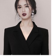 【新作】【送料無料】 SMTHMA2020スプリングブラックシングルブレスト2ピースセットレディースノッチ付きアシンメトリースカート 春物 AL Feminine277648437574 | Feminine