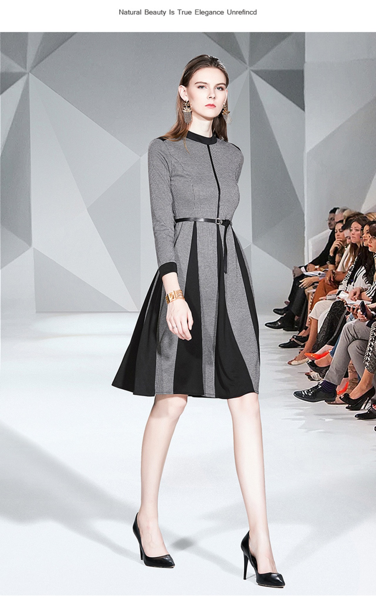 【新作】【送料無料】 SMTHMA春の千鳥格子ドレス長袖スリムヴィンテージプリーツドレス女性パーティーVetidos滑走路ドレス ロング スプリング 春物 ビンテージ AL Feminine277591793160 | Feminine