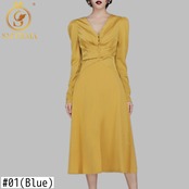 【新作】【送料無料】 SMTHMAオータムエストランウェイパーティードレスレディースセクシーVネックセレブリティハイエンドレトロロングドレス 秋物 AL Feminine251203174696 | Feminine