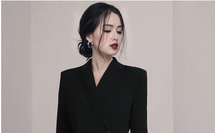 【新作】【送料無料】 SMTHMA2020ブラックシングルブレストプリーツロングドレスレディースウィンターノッチネックスーツロングスリーブドレスOLVestidos 長袖 冬物 AL Feminine222140007201 | Feminine
