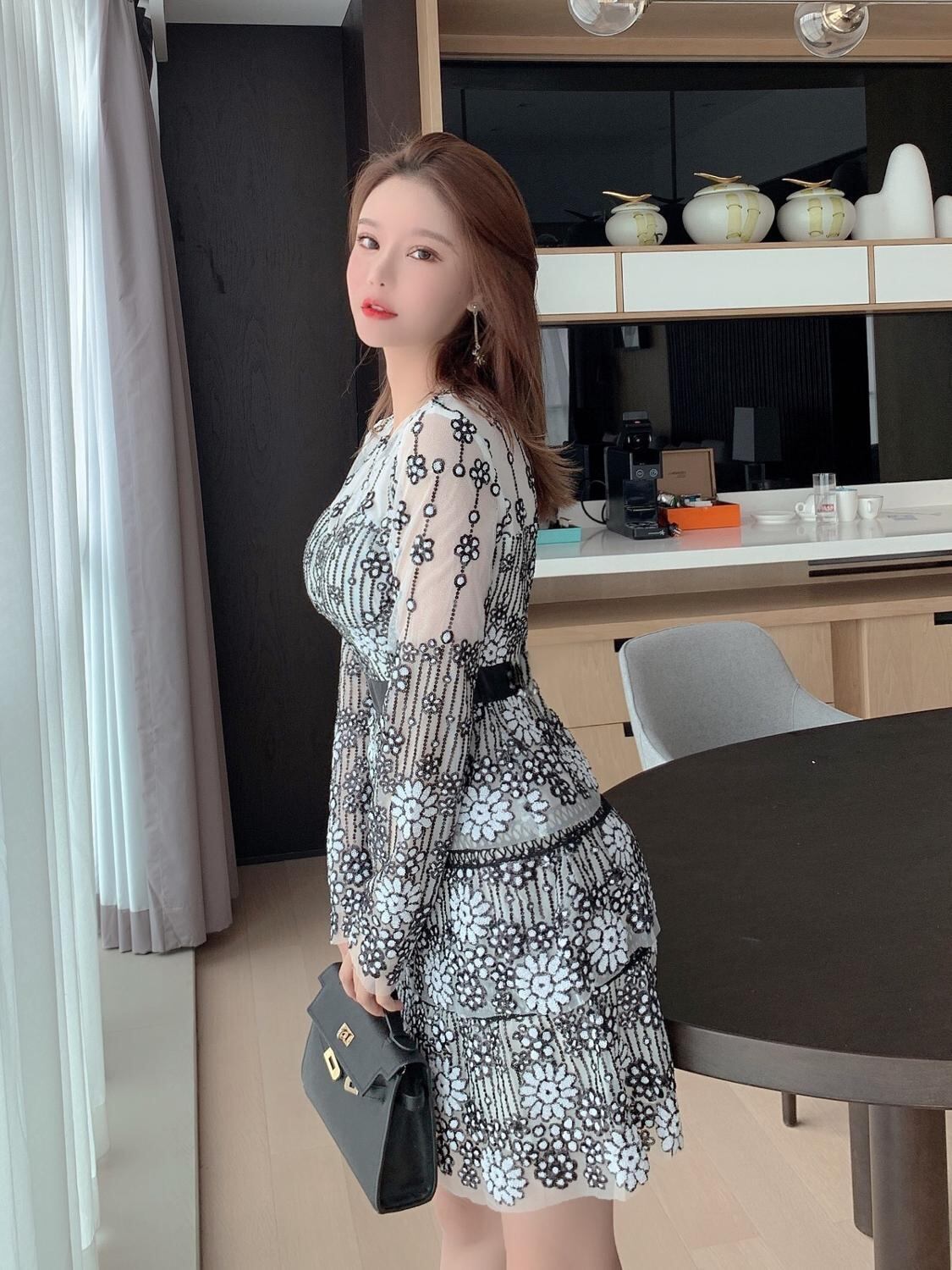 【新作】【送料無料】 SMTHMA2020春のセルフポートレートドレスセクシーな女性の刺繡スパンコールドレス女性の長袖滑走路パーティードレス ロング 刺繍 スプリング 春物 AL Feminine238432334842