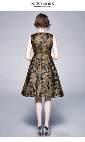 【新作】【送料無料】 SMTHMA2020レトロジャカードOネックノースリーブタンクドレスウエスト女性刺繡金色の花サマードレス レッド 刺繍 夏物 フラワーデザイン AL Feminine259705681528 | Feminine
