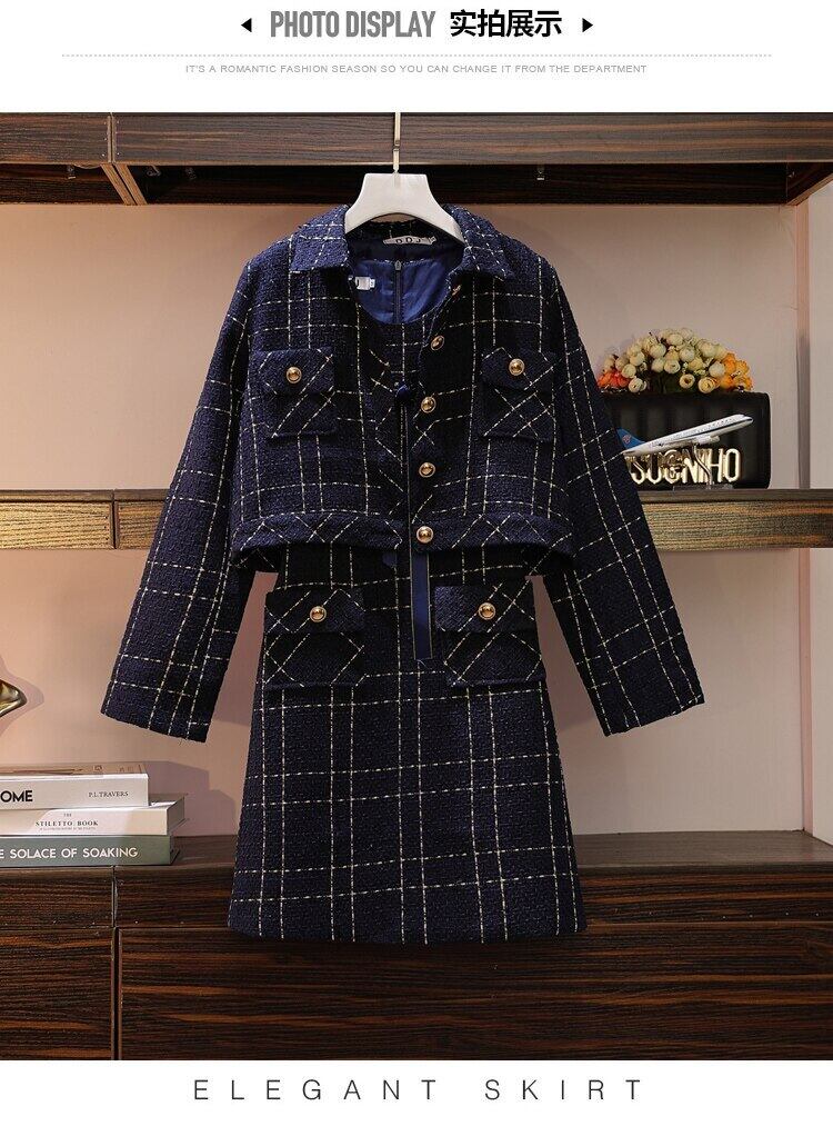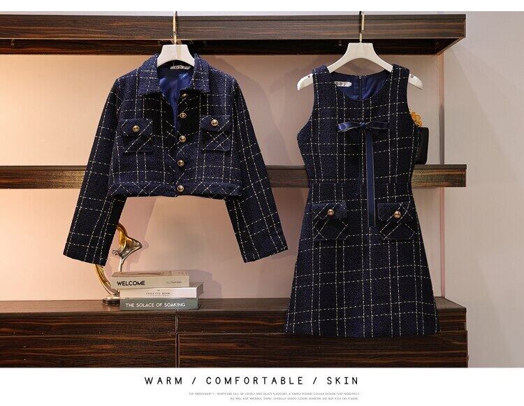 【新作】【送料無料】 SMTHMAツイードドレススーツ女性秋冬チェック柄ボタンミニドレスセット2020ストリートウェアOfficeJacketドレススーツ オータム 秋物 ウィンター 冬物 会社 学校 通勤や通学にも AL Feminine257371227551