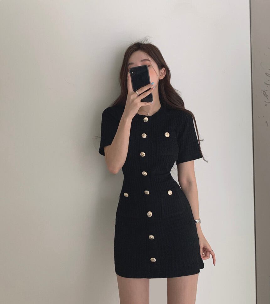 【新作】【送料無料】 SMTHMAサマードレス2020半袖ニットドレススリムで甘いシングルブレストドレス ショート ハーフスリーブ 大人ガーリー スウィート キュート カジュアル 夏物 AL Feminine264258639229 | Feminine
