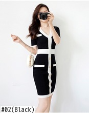 【新作】【送料無料】 SMTHMA2020年夏カラーボタン装飾半袖ニットドレスレディースシックなシングルブレストドレス ショート ハーフスリーブ サマー 夏物 AL Feminine287663559898 | Feminine