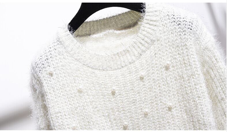 【新作】【送料無料】 SMTHMA秋冬レディース2点セット2020女性ビーズブライトシルク長袖セーター+パールチェック柄ツイードスカートセット ロング オータム 秋物 ウィンター 冬物 真珠 AL Feminine298842455940 | Feminine