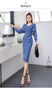 【新作】【送料無料】 秋と冬のニットプルオーバーセータードレス高級シャイニングニットジャンパーセクシーな背中の開いたバットスリーブニットドレス オータム 秋物 ウィンター 冬物 AL Feminine256561824822 | Feminine