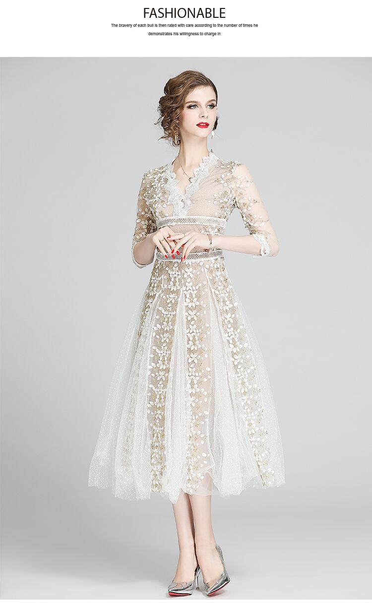 【新作】【送料無料】 SMTHMA2020到着女性サマードレスセクシーなVネックウエストパッチワークメッシュレース刺繡ドレス 刺繍 夏物 AL Feminine260389811659