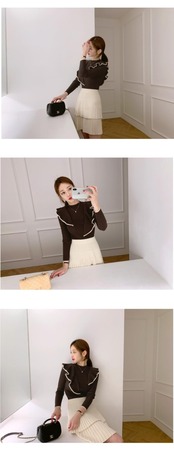【新作】【送料無料】 SMTHMAヴィンテージフリルショートニットセーター女性女性セーターOネック長袖プルオーバーシックなスウィートトップス ロング ラッフル 大人ガーリー キュート カジュアル ビンテージ AL Feminine276612261070 | Feminine