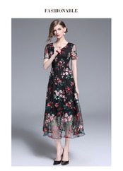 【新作】【送料無料】 SMTHMAセクシーメッシュヴィンテージフローラル刺繡マキシドレスレディースサマー半袖ビーチドレスエレガントレディースロングドレス ショート ハーフスリーブ 刺繍 夏物 花柄 ビンテージ AL Feminine268572286682