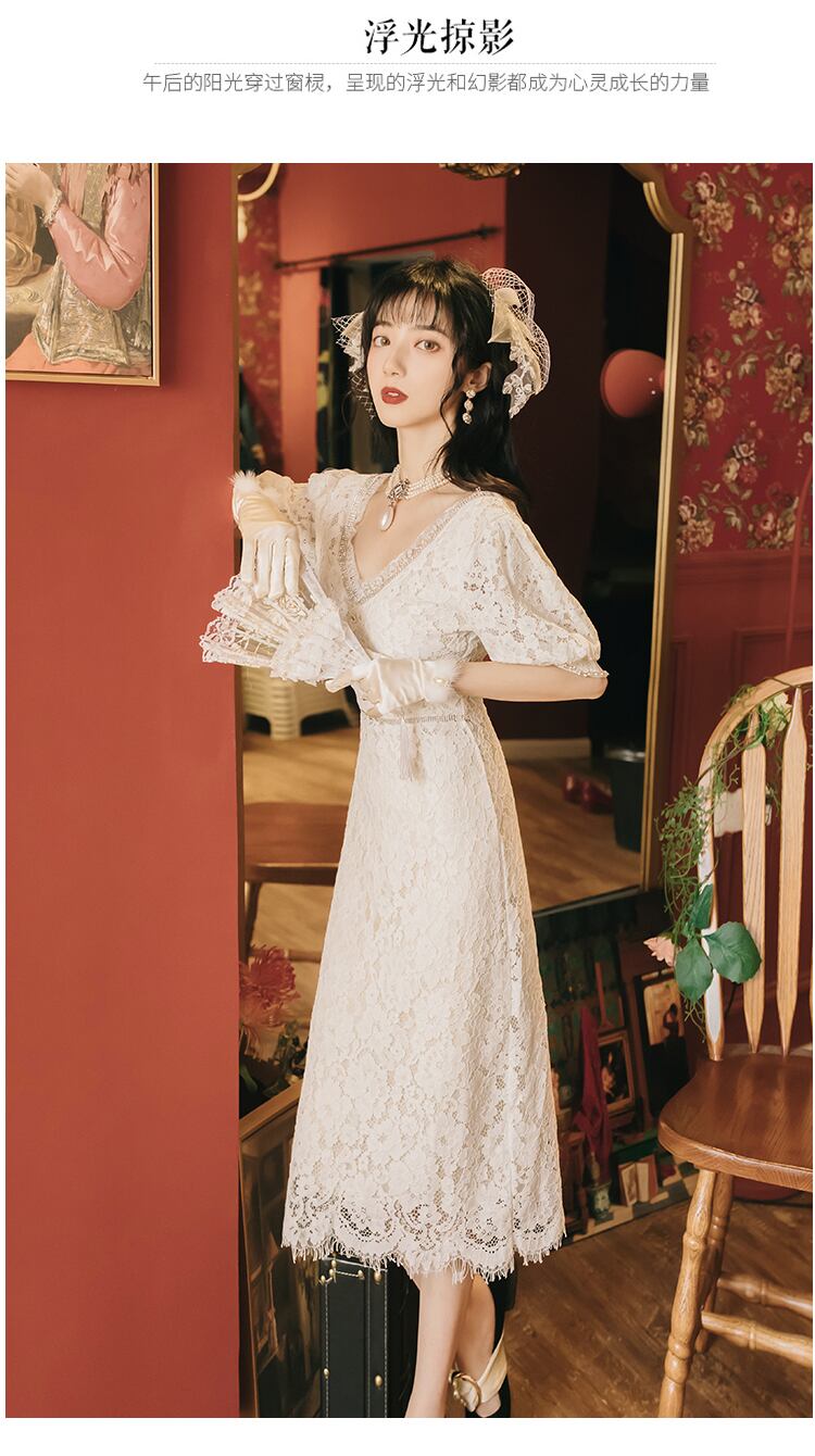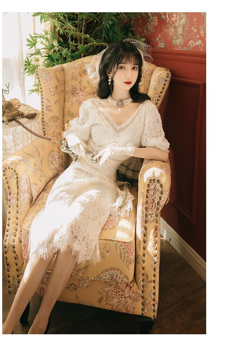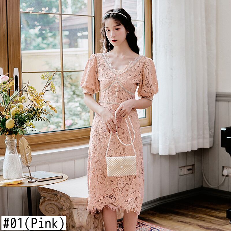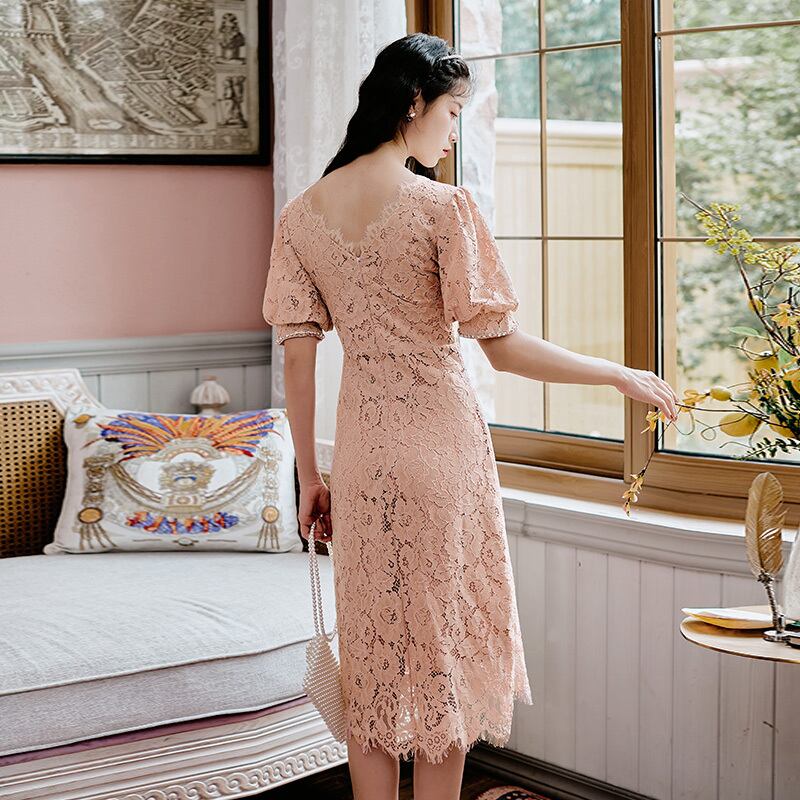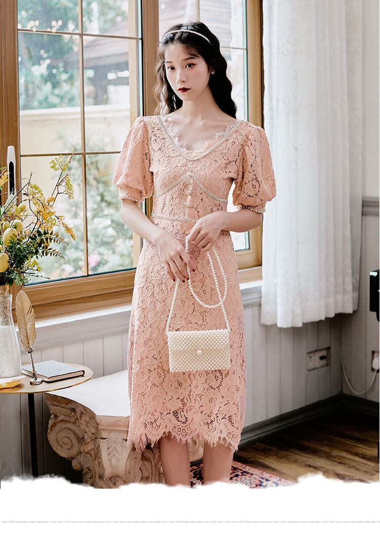 【新作】【送料無料】 品質の豪華なデザイン滑走路ドレス女性夏のダイヤモンドレースドレス女性パフスリーブセクシーなVネックパーティードレス サマー 夏物 AL Feminine253557586536 | Feminine