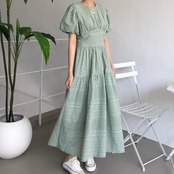 【新作】【送料無料】 オフィスシックなレースの中空アウトドレス女性パフスリーブ年夏スリムウエストロングドレス サマー 夏物 会社 学校 通勤や通学にも AL Feminine282245555138