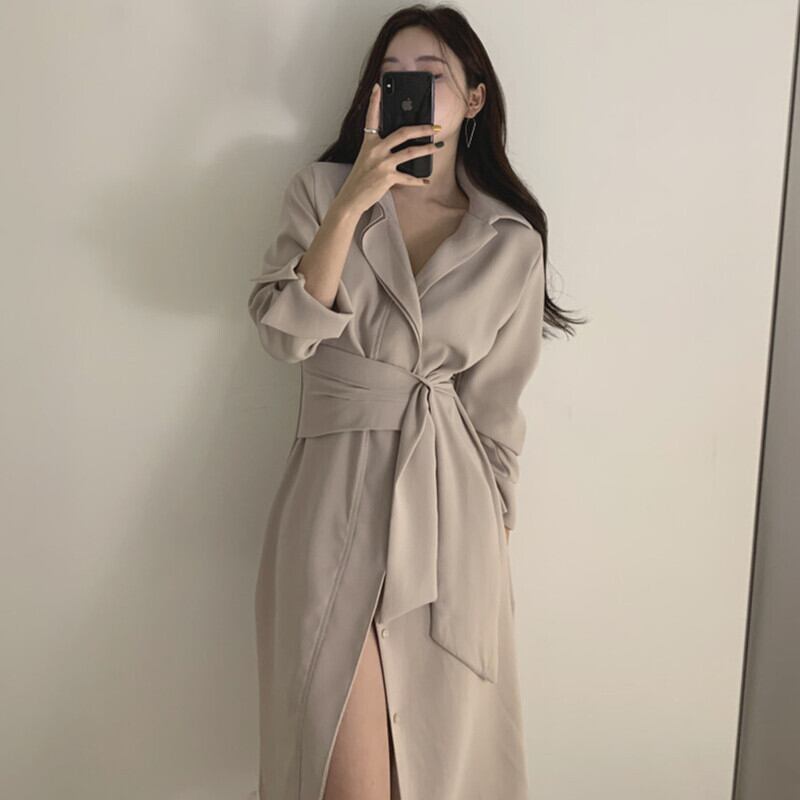 【新作】【送料無料】 SMTHMA2020サマーミディドレスレディースウエスト長袖フロントセクシースプリットオフィスシックなドレス ロング 夏物 会社 学校 通勤や通学にも AL Feminine240922691021 | Feminine