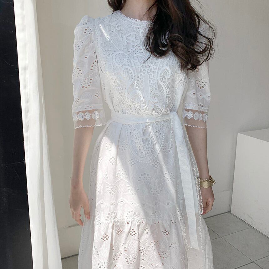 【新作】【送料無料】 SMTHMA2020夏の女性の半袖ヴィンテージネクタイ中空アウトレースロングドレスVestidos ショート ハーフスリーブ サマー 夏物 ビンテージ AL Feminine240204774169 | Feminine