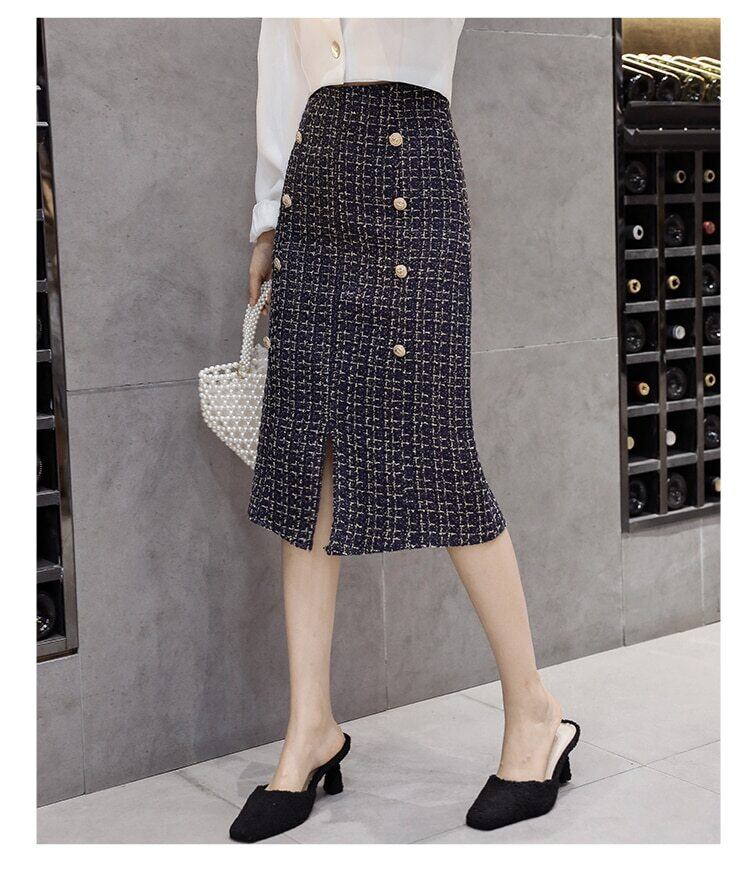 【新作】【送料無料】 女性ツイードスカートロングAラインスカートスプリットカーフ丈ウエストボタンオフィススカート 会社 学校 通勤や通学にも AL Feminine266208680811 | Feminine