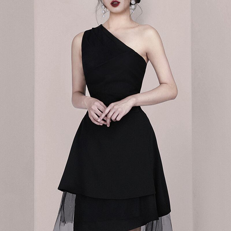 【新作】【送料無料】 ノースリーブ非対称女性パーティードレスセクシーなワンショルダーウエストフリルミディドレス2020年夏 ラッフル サマー 夏物 AL Feminine23183214912 | Feminine
