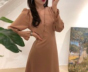 【新作】【送料無料】 SMTHMA2020秋の女性のドレスフレアスリーブセクシーなVネックヴィンテージシングルブレストパーティードレスvestido オータム 秋物 ビンテージ AL Feminine275555105974