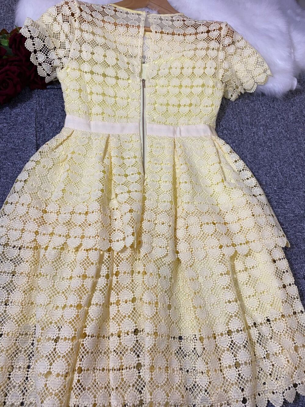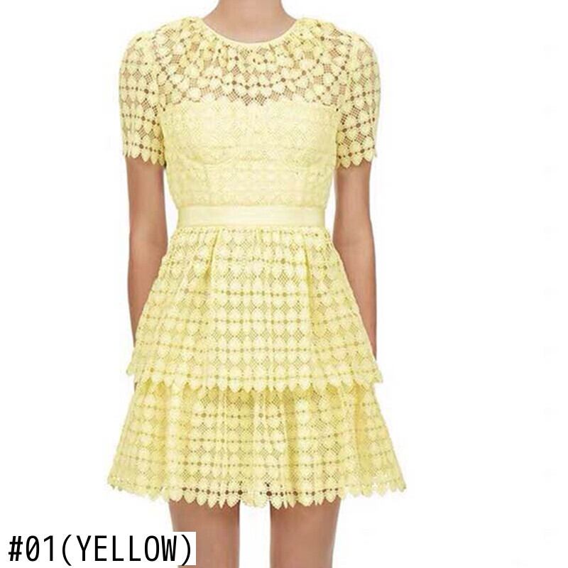 【新作】【送料無料】 SMTHMA2020到着夏黄色のドレス女性半袖レーススリム中空アウトドレスミニドレス ショート ハーフスリーブ サマー 夏物 AL Feminine289779465916 | Feminine