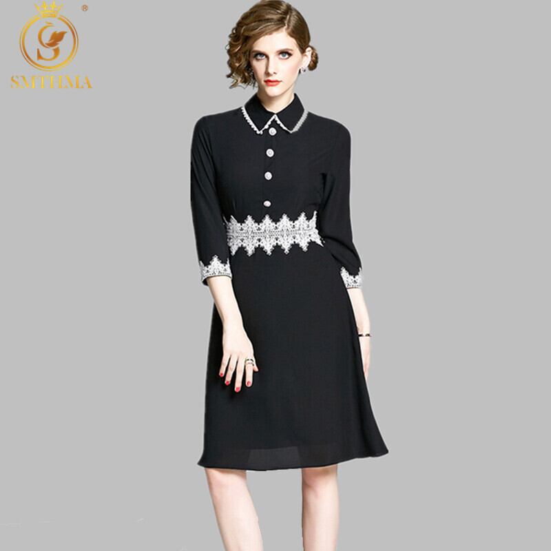 【新作】【送料無料】 SMTHMA2020ランウェイサマードレスレディースヴィンテージブラックレースパッチワークパーティードレスVestidos 夏物 ビンテージ AL Feminine262066740539