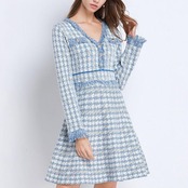 【新作】【送料無料】 SMTHMAレディースニット千鳥格子ドレス2020秋冬スリム長袖パーティーセーターVestido ロング オータム 秋物 ウィンター 冬物 AL Feminine27367063349 | Feminine