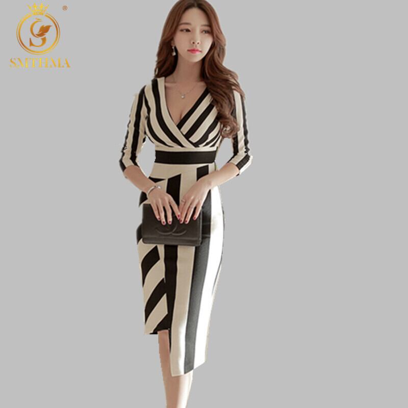 【新作】【送料無料】 SMTHMAファッションサマードレス女性セクシーなオフィスレディは仕事に着るドレスビジネスフィットストライプパーティードレス 夏物 会社 学校 通勤や通学にも AL Feminine221625939588 | Feminine