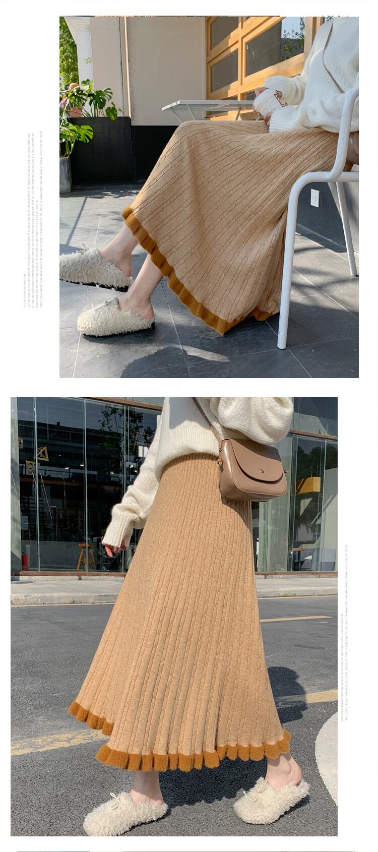 【新作】【送料無料】 SMTHMAレディースニットスカート秋冬厚手ミディスカート伸縮性バンドウエストラッフルスカートレディース2020 エラスティック オータム 秋物 ウィンター 冬物 AL Feminine258585441855 | Feminine