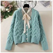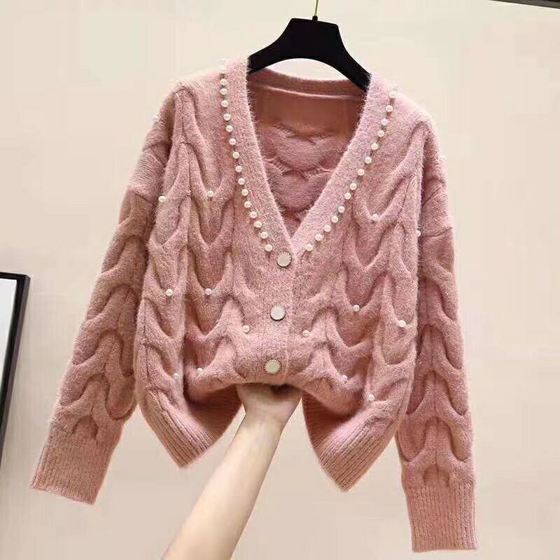 【新作】【送料無料】 SMTHMA2020オータムカーディガンルーズストリートウェアニットセーターコートスウィートビーズセクシーVネックニットカーディガンレディースジャケット 大人ガーリー キュート カジュアル 秋物 AL Feminine290075246358