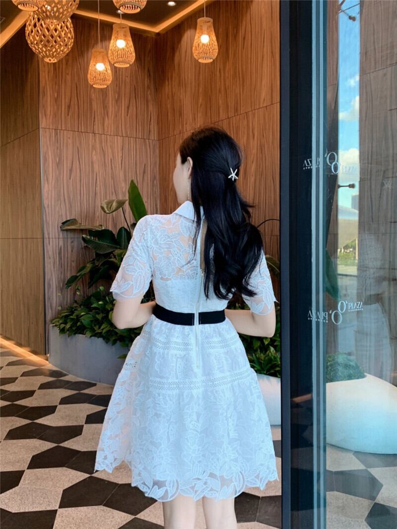 【新作】【送料無料】 SMTHMAヴィンテージレディースランウェイドレス半袖ウエストホローアウトレースドレス2020 ショート ハーフスリーブ ビンテージ AL Feminine286117557568