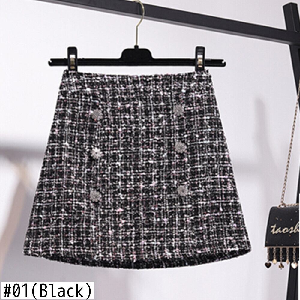 【新作】【送料無料】 SMTHMAブラックツイードスカート2020秋冬レディースチェック柄ダブルブレストショートミニスカート オータム 秋物 ウィンター 冬物 AL Feminine277629233821