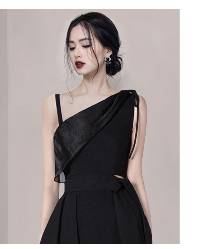 【新作】【送料無料】 SMTHMAレディブラックサマードレス女性セクシーオフショルダースパゲッティストラップ非対称ドレスVestidos 夏物 AL Feminine210327651458 | Feminine