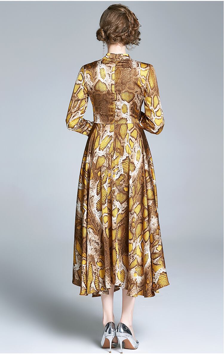 【新作】【送料無料】 2020春の滑走路ドレス女性長袖スタンド襟シングルブレストサーペンタインプリントヴィンテージミディドレス ロング スプリング 春物 ビンテージ AL Feminine299181423911 | Feminine