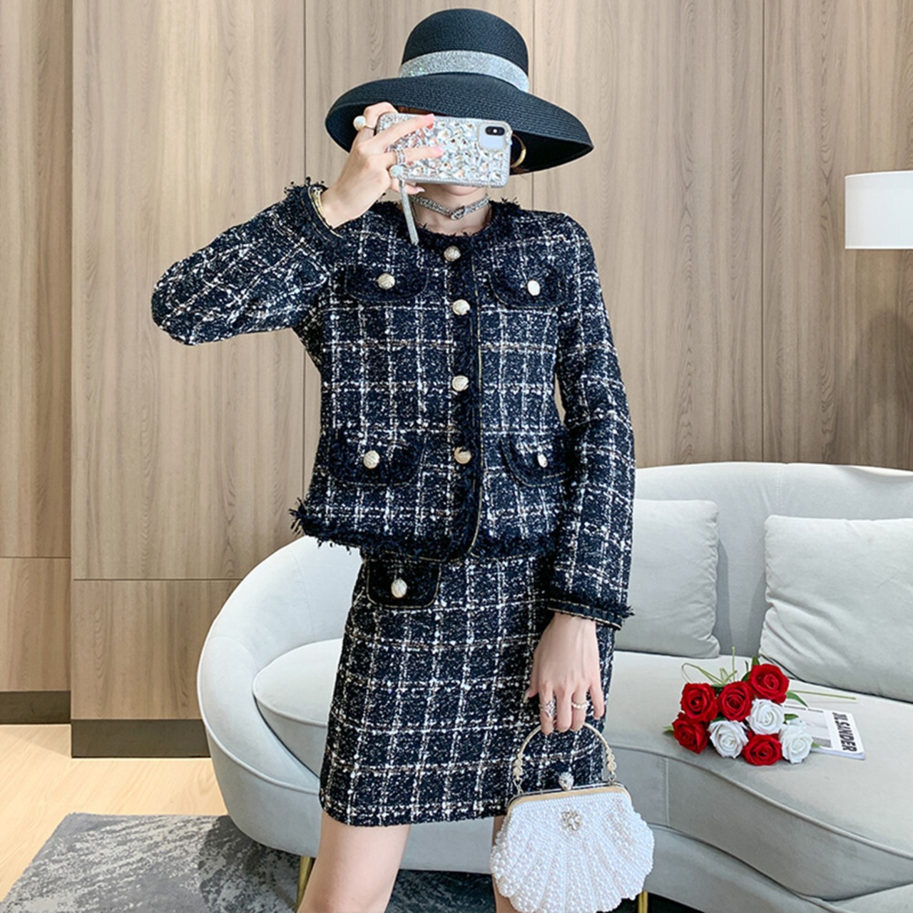 【新作】【送料無料】 SMTHMAツーピースツイードウールジャケットレディーススーツシングルブレストチェック柄カジュアルレディーススカートセットオフィスレディースセット 会社 学校 通勤や通学にも AL Feminine275097051479 | Feminine