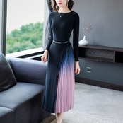 【新作】【送料無料】 SMTHMA2020春の女性の長袖スリムニットパッチワークドレスグラデーションプリーツセータードレス ロング スプリング 春物 AL Feminine239470506256 | Feminine