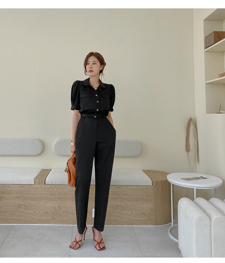 【新作】【送料無料】 SMTHMA2020ブラックジャンプスーツ半袖セクシーウエストパンツ女性夏OL服 ショート ハーフスリーブ サマー 夏物 AL Feminine213213468169 | Feminine