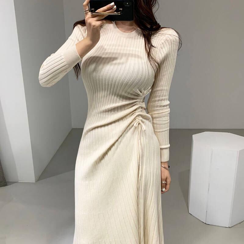 【新作】【送料無料】 SMTHMAレディース長袖セータードレス巾着秋冬OネックAラインニットVestidoDa Festa ロング オータム 秋物 ウィンター 冬物 AL Feminine291849444320 | Feminine